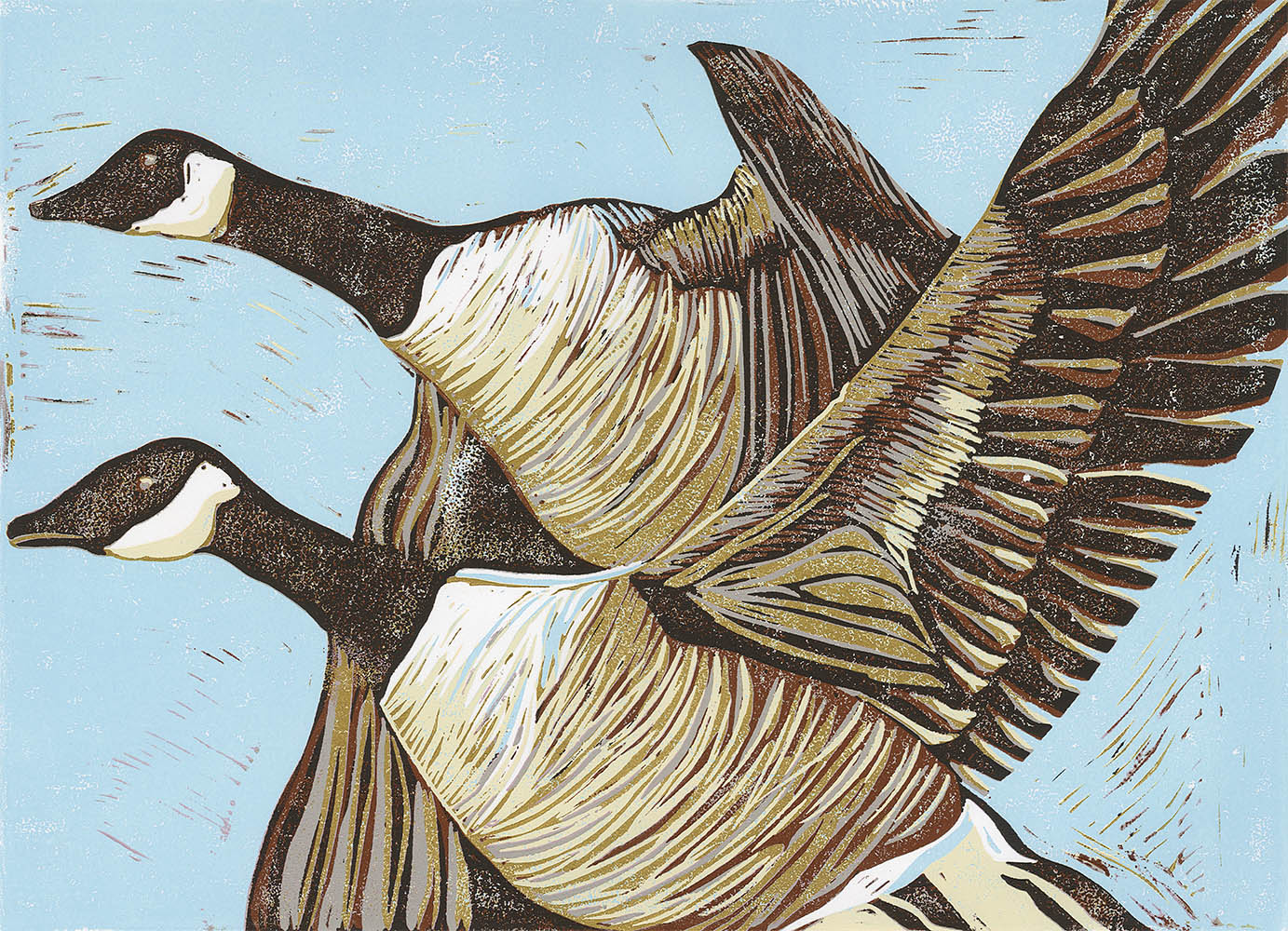 An iconic sight in early May, large flocks of Canadian Geese make their V line to the coast. Honking to keep traffic flowing and announcing their arrival, it's always great to look up and enjoy this splendor. What a tranquil and bucolic scene. I wanted to focus on the organized chaos in this pair and illustrate the feather colour and pattern. This is part of my Canadiana collection that will continue to grow year after year.
