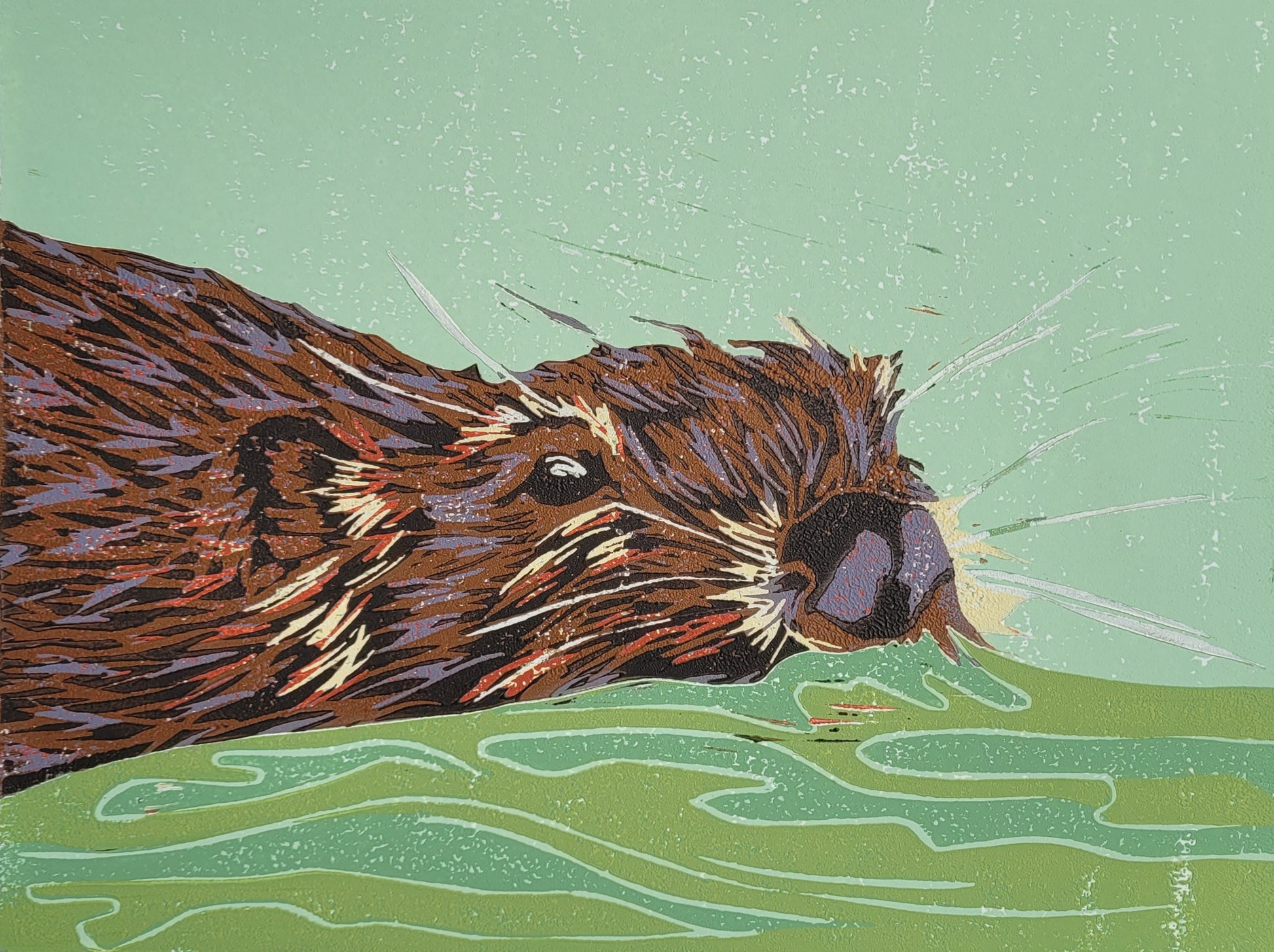 Industrious and known as ecosystem engineers, beavers are constantly gnawing at wood along the lakes and rivers to make new additions to their lodge. They can weigh up to 50 kgs and are the second largest living rodents. Mostly found in North America beavers play a critical role keeping our wetlands intact to moderate water temperature and reduce sediment and nutrients downstream. I chose these colours to highlight the glistening fur in contrast to the forest shaded water.