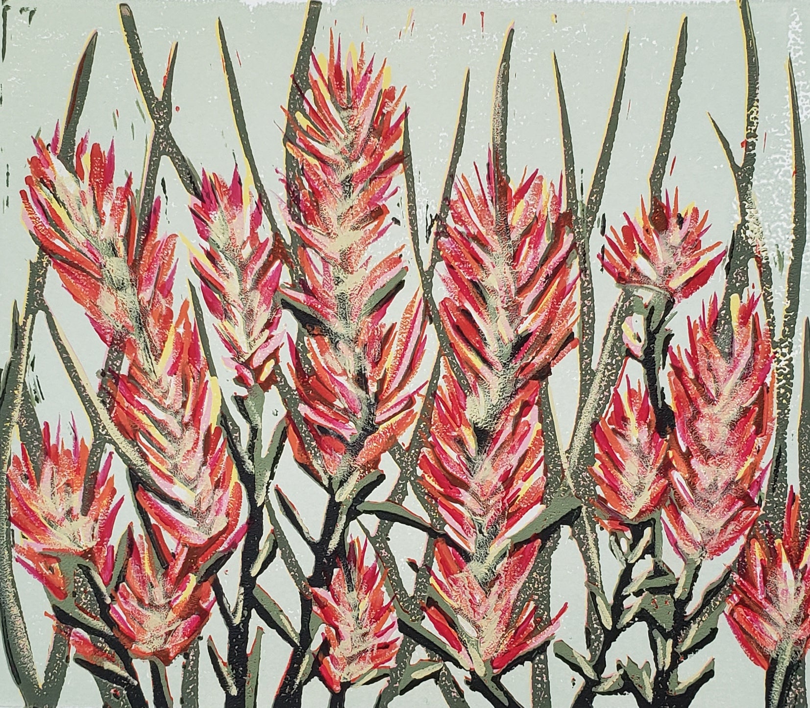 Tucked along the edges of salal bushes and hidden in the dune grass just waiting to be discovered on the beaches. Indian Paintbrush is a fiery powerful red but also has a contradiction of soft whisper edges.
