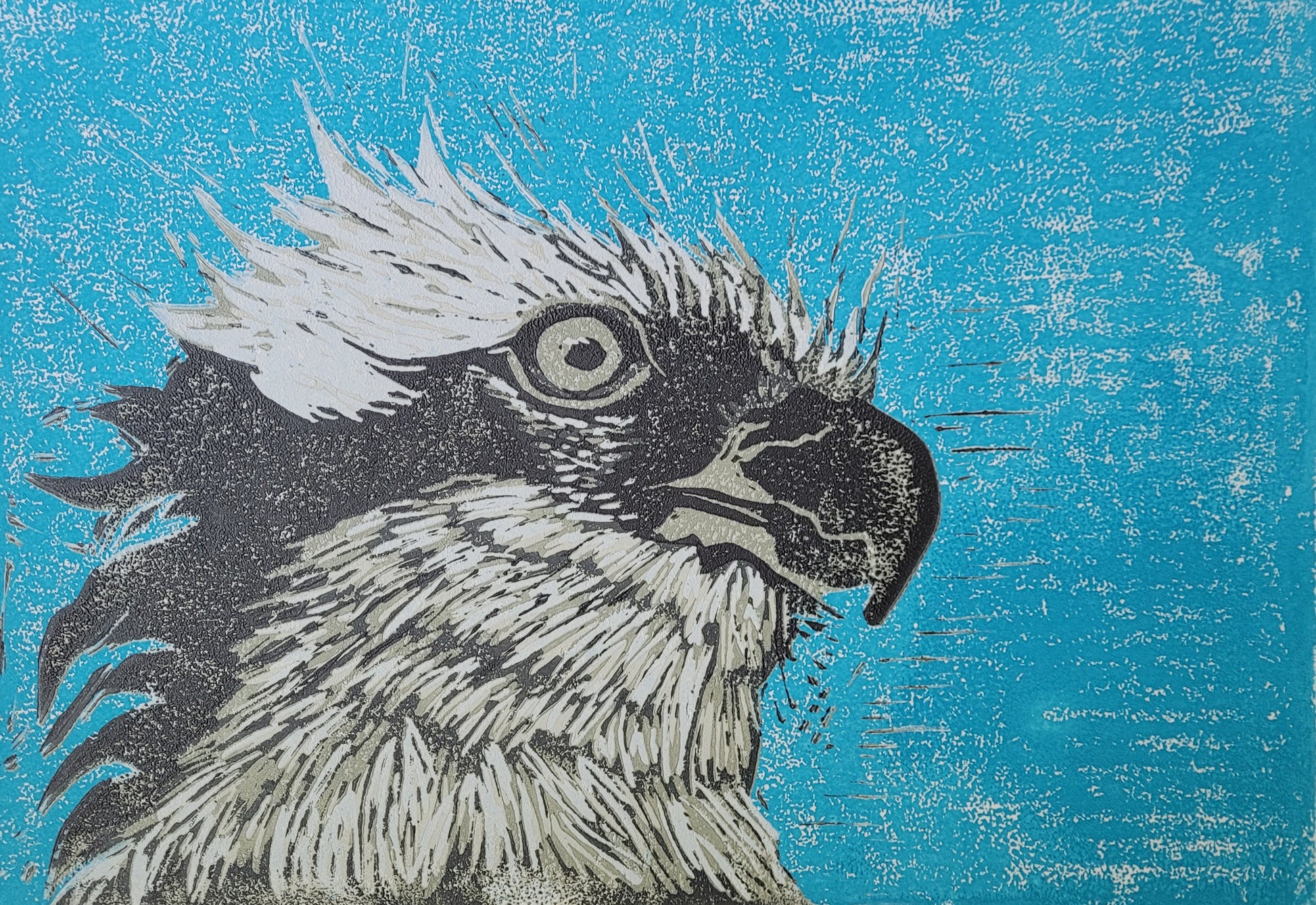 Hand pulled original linocut print, image size is 9 x 13 inches, series of 10, signed and numbered. Framing not included.