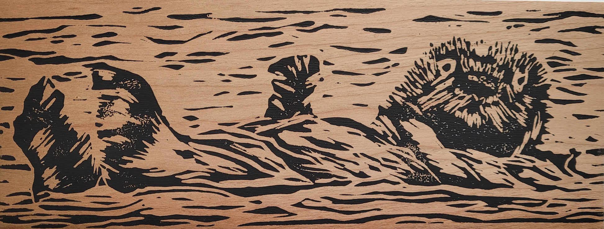 Handpressed linocut printed with black ink on real Canadian wood veneer. Mounted on an 6 x 14 inch white backer making it easy for display.
