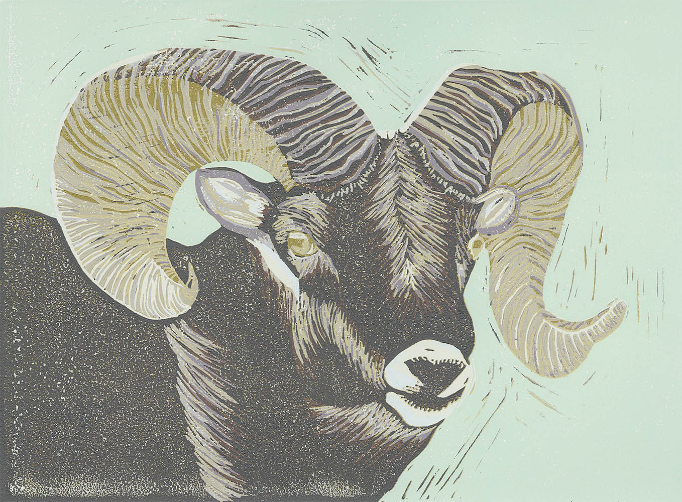 Stone Sheep are found in Northern British Columbia. I spent a working season in Peace River Country in 2002 and explored the region from Tumbler Ridge to Dawson Creek, mile zero for the Alaska Highway. If you travel even farther to Fort Nelson and beyond you can spend time in Muncho and Stone Mountain Provincial Park and my favourite hot springs in BC. Stone Mountain Provincial Park is known as the foothills of the Northern Rockies and the geology is spectacular, The undulating folds and lineations of the metamorphic rocks are outstanding and spotted everywhere are rock piles are these stone sheep. Their horns almost look suspended above their head, almost impossible that they are a fixed item on the body. I wanted to highlight these beautiful features and enhance the curves and growth like tree rings.